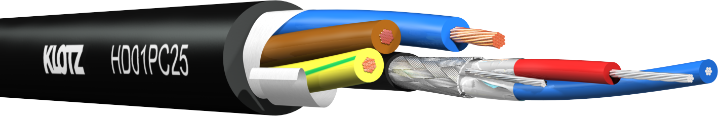Conçu pour les applications mobiles, le nouveau câble hybride KLOTZ HD01PC25 combine une liaison symétrique pour des signaux audio ou DMX avec une ligne d’alimentation. Il est doté d’une gaine extérieure robuste et très flexible en PVC souple, ce qui le rend idéal pour le raccordement d’enceintes amplifiées, de gradateurs, de projecteurs, aussi bien dans des environnements live que dans les installations fixes.