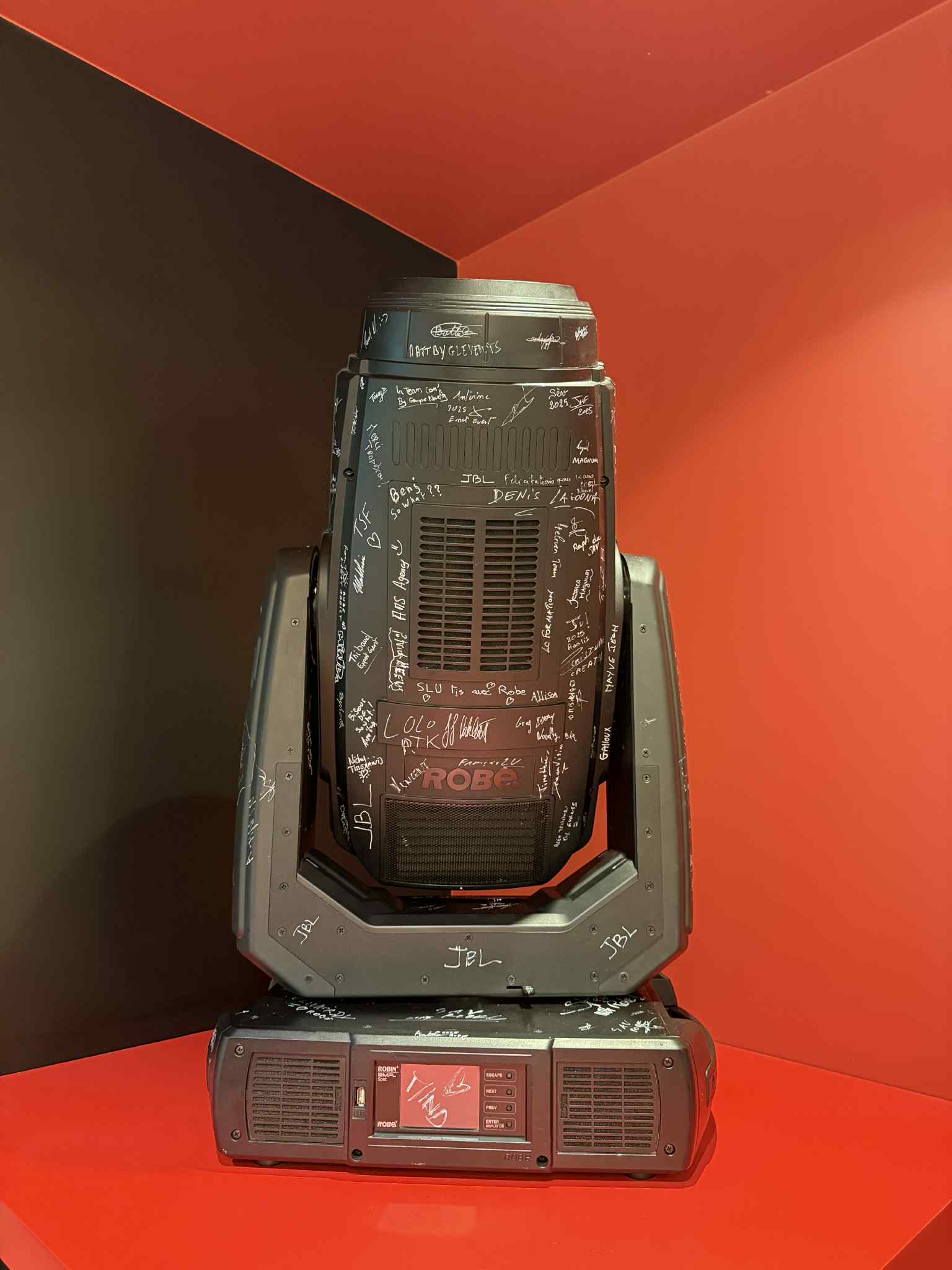 Spoiler alert : le BMFL reste le number one ! C’est ainsi qu’un des moments marquant de “cette” soirée était dès l’accueil des participants. Un de ces projecteurs iconiques de la gramme Robe, le best-seller BMFL, était installé à l’entrée des nouveaux locaux et était offert à la signature de tous les participants. Ce geste, fort de sens, a permis de cristalliser la cohésion d’une communauté constituée de multiples facettes autour d’un produit qui aura marqué l’histoire de la marque et de tous les secteurs d’activités gravitant autour de la lumière.