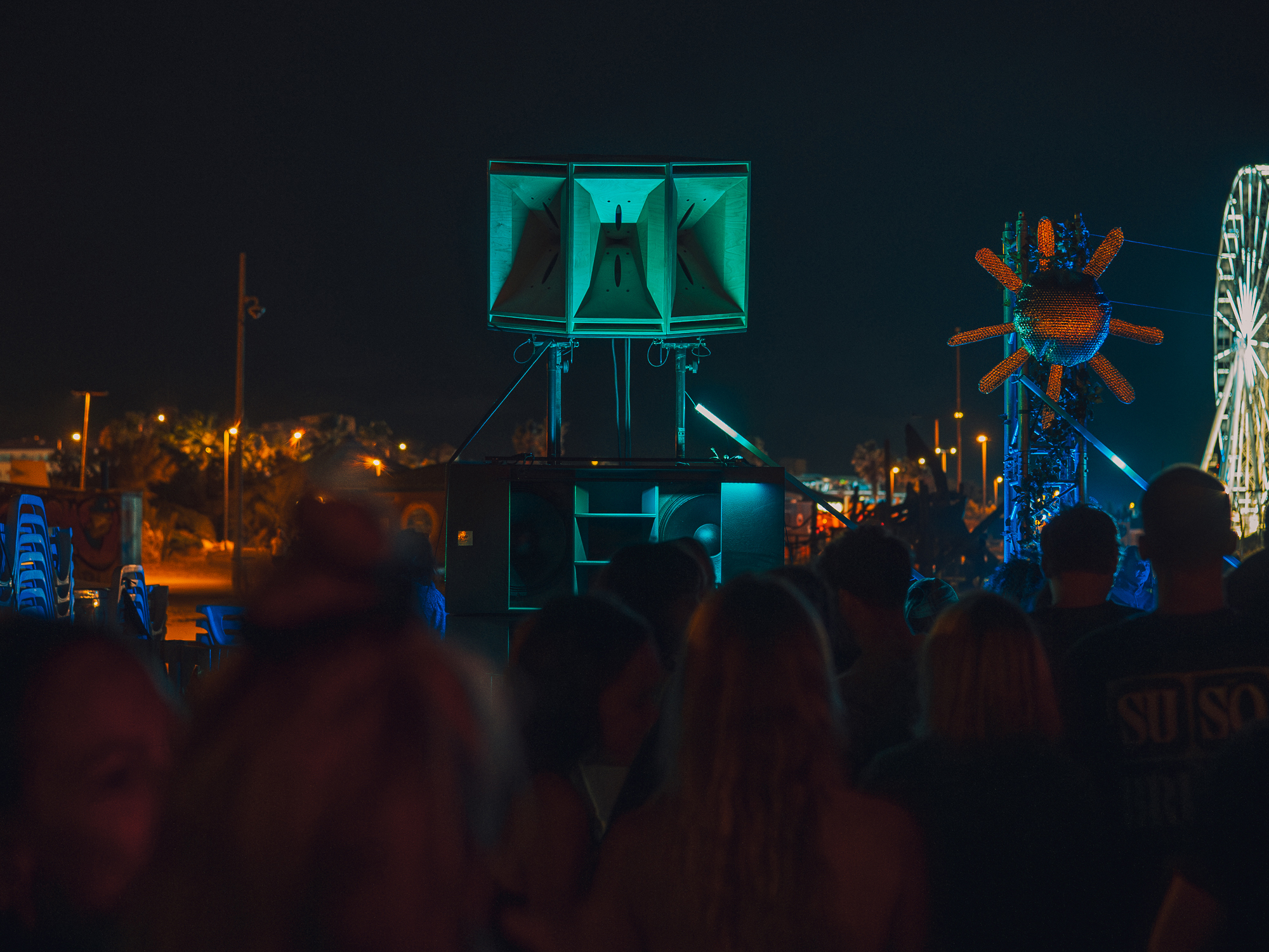 Le système de diffusion sonore se compose de six enceintes haut rendement VCH30 à courbure constante suspendues dans la salle pour assurer une couverture homogène. Elles sont dotées d’un pavillon conique-exponentiel à entrées multiples et proposent une directivité constante sur une bande de 85-18 000 Hz. Elles sont associées à deux subwoofers hybrides VTL218 à double résonateur, posés au sol devant la scène. Sur scène, six enceintes coaxiales pleine bande VCX12 assurent des retours précis pour les artistes. Tout ce système exploite seize canaux de quatre amplificateurs autonomes PikiP, brevetés et fonctionnant sur batteries.