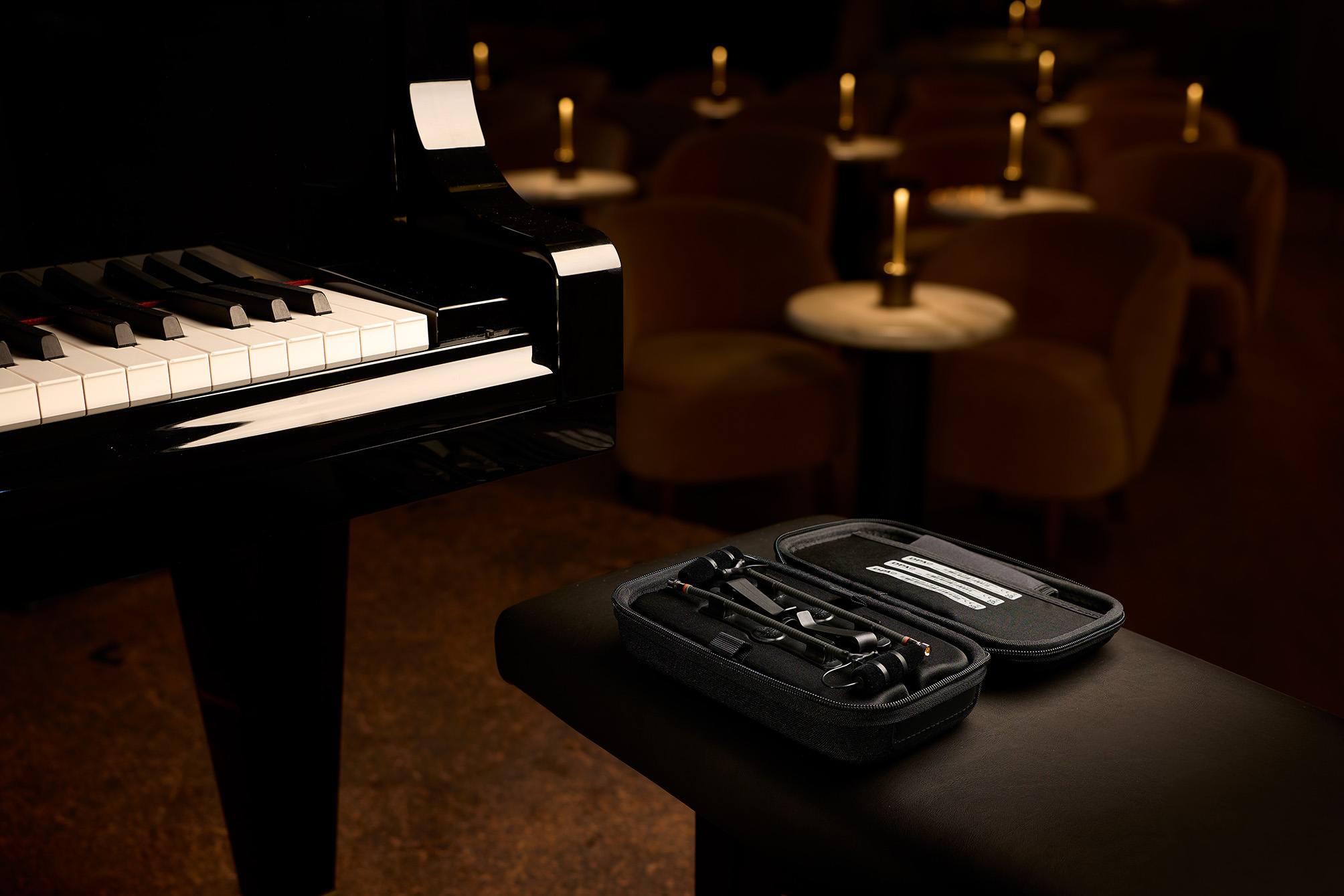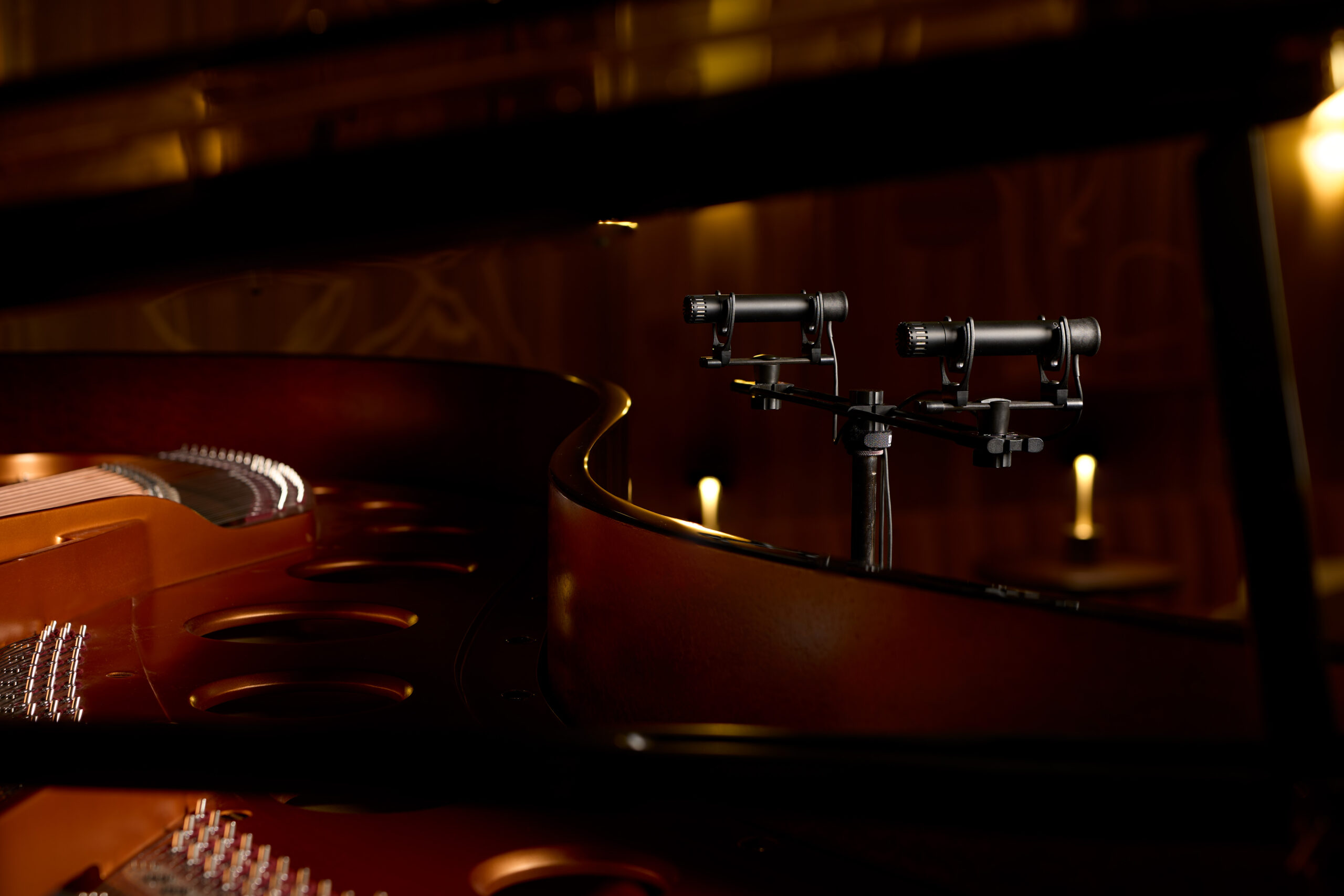 Bien qu’il n’existe pas de placement universellement parfait dans toutes les situations, les kits stéréo DPA pour le piano se distinguent particulièrement dans les placements les plus répandus : montés sur la table d’harmonie, montés près des marteaux et sur pied à l’extérieur du piano. Bien sûr, rien n’est proscrit et de nombreuses possibilités de prise de son plus créatives sont envisageables, que le kit DPK4011, offrant la plus grande liberté de placement, permettra de réaliser.