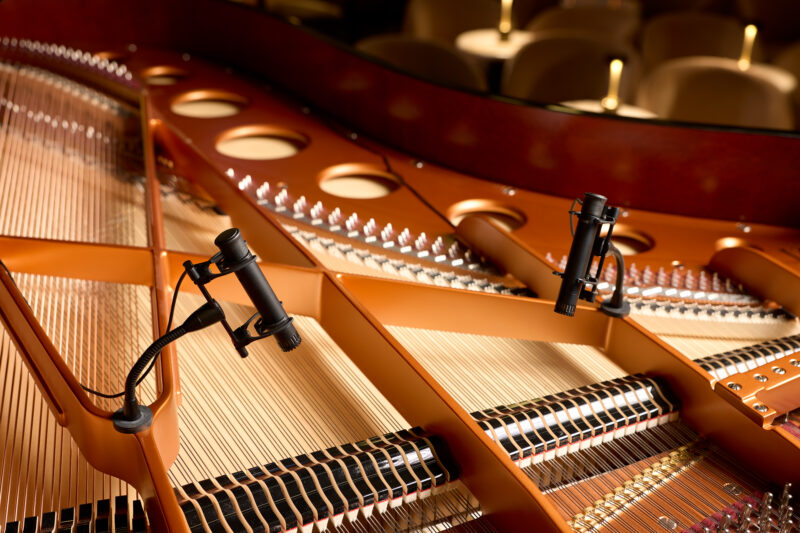 Bien qu’il n’existe pas de placement universellement parfait dans toutes les situations, les kits stéréo DPA pour le piano se distinguent particulièrement dans les placements les plus répandus : montés sur la table d’harmonie, montés près des marteaux et sur pied à l’extérieur du piano. Bien sûr, rien n’est proscrit et de nombreuses possibilités de prise de son plus créatives sont envisageables, que le kit DPK4011, offrant la plus grande liberté de placement, permettra de réaliser.