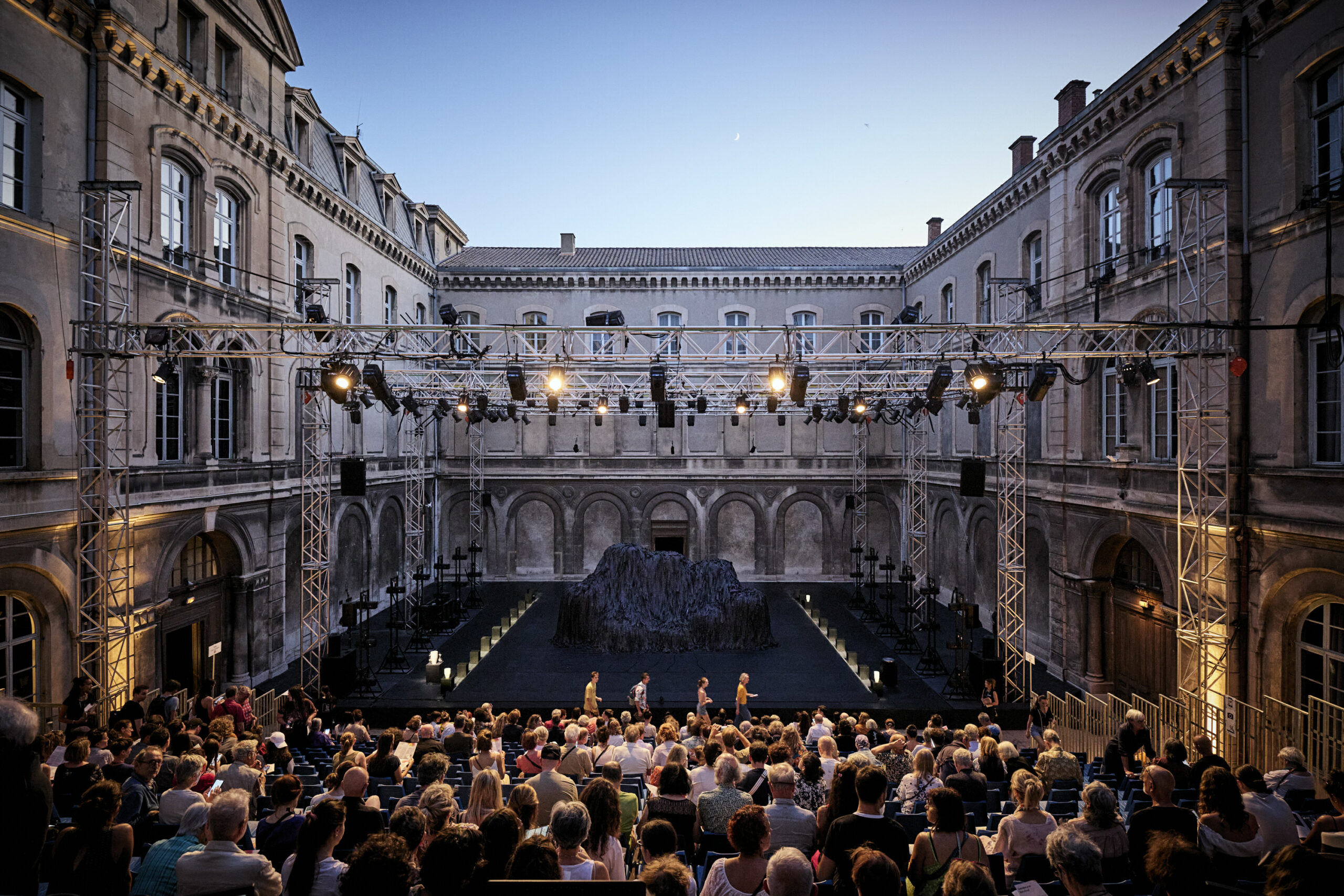 P. R. : La première contrainte, c’est la ville elle-même. Avignon est classée au patrimoine mondial de l’UNESCO, ce qui implique de nombreuses restrictions techniques. Dans des lieux comme la Cour d’Honneur, il est par exemple impossible de percer : des dispositifs de protection stricts sont imposés. Nous intervenons dans des sites historiques — la Cour d’Honneur, le Cloître des Carmes, le Cloître des Célestins — que nous transformons temporairement en espaces de représentation. Notre rôle consiste donc à accompagner les compagnies et les scénographes en leur expliquant qu’ils doivent s’adapter à ces lieux, et non l’inverse et nous travaillons également en étroite collaboration avec le SDIS84.
